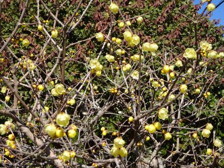 ミツマタは、今咲かんとしています。金柑は、黄色に色づいていました。
