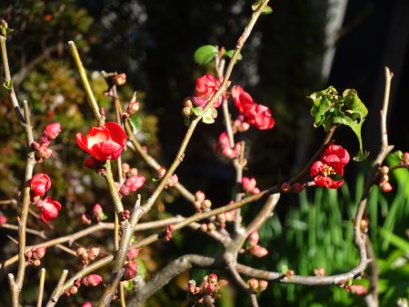 ロウバイ、紅梅、ボケ、水仙等が、ちょっと寒そうに咲いていました。