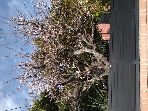 近所の塀越しに梅が咲き始めました。